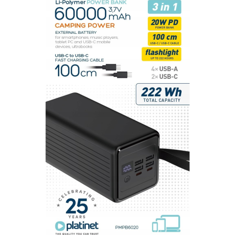 Platinet PMPB6020 60000mAh 20W PD PowerBank Black (PMPB6020)