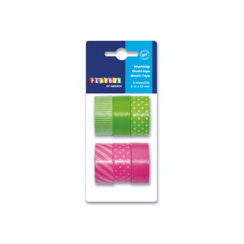 1 kép Playbox : Dekorációs ragasztószalag szett zöld és rózsaszín színben 6 db-os