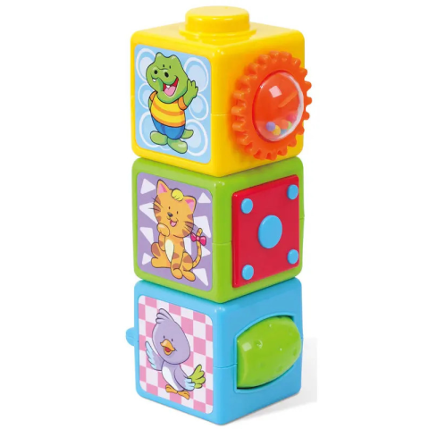 A Készségfejlesztő kockák bébijáték egy többfunkciós, sok szórakozást nyújtó készségfejlesztő a kicsiknek. A kockák minden oldalán különböző lehetőségeket találhatsz, csörgő-zörgő hangokkal, tolható-forgatható funkciókkal. Csomagolási méretek: 11 x 8 x 28