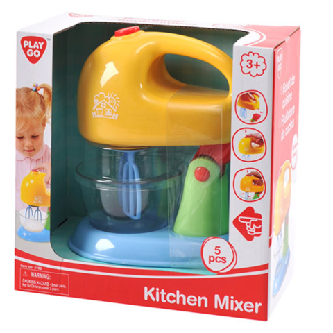 A Playgo élethűen kidolgozott játék tálas konyhai mixere minden kislány konyhájának kötelező darabja. A termék két darab kivehető keverőlapátot és egy szintén kivehető műanyag tálat tartalmaz. A tálas mixer használata rendkívül egyszerű, egy gomb lenyomásával már indulhat is a főzőcskézős játék.