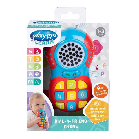 Gyerek telefon - nyomógombos, matematika és zene tanítására, 1 éves kortól alkalmas, hangeffektek és fényeffektek, 3 db AAA típusú elemmel működik (tartozék) A Playgro játék telefon a fiúk és a lányok érdeklődését is felkelti. Kiváló minőségű műanyagból készült, és már egyéves kortól alkalmas a gyermekek számára. Vidám színekkel és főként hang- és fényhatá
