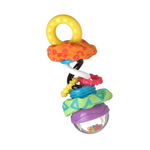 A csörgős rágókát kis kezekre tervezték. Leköti babád figyelmét, szórakoztatja őt, míg a rágás enyhíti a fogzási fájdalmakat, így megnyugtatja a kicsit. Forgatható, így csattogó-kattogó hangokat ad ki. A különböző textúrájú és színű gyűrű fejleszti a