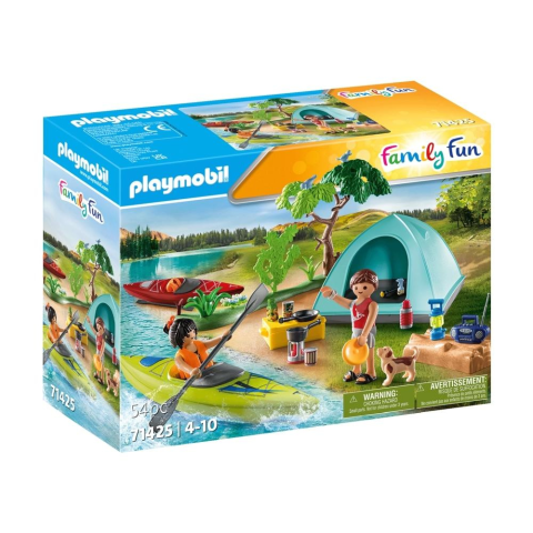 Egy nyári nap a kempingben - a család kényelembe helyezi magát a nagy sátor előtt, együtt esznek és együtt élvezik a nyaralást.A kempingezés az egész család számára szórakoztató. Kenuzás, túrázás és a természet élvezete napközben, este pedig a tábortűz kö