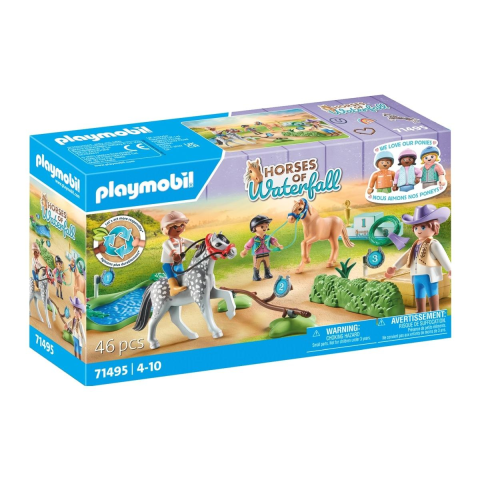 Pódiummal a póni verseny díjkiosztóhoz, különböző akadályokkal és sok lovas kiegészítővel. Figurák: 1 férfi, 2 gyerekÁllatok: 2 póniKiegészítők: 3 akadály, 1 dobogó, 1 győzelmi koszorú, 1 serleg, 2 sisak, 2 kantár, 2 kantár, 1 kalap, 2 szénakocka