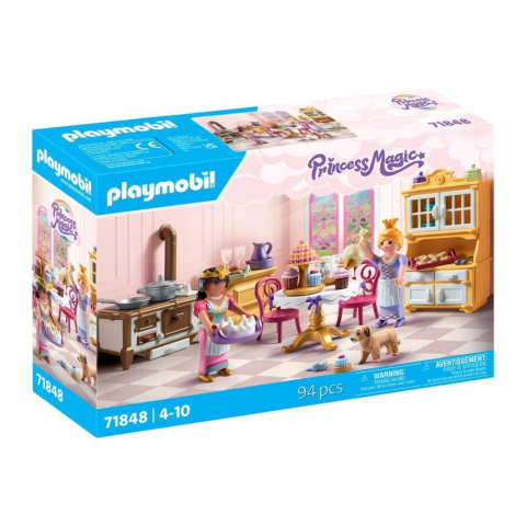 A királyi konyhában mindig forr a levegő – és nem csak a sütőben!A Playmobil Kastélykonyha szettben két ügyes hercegnő készíti a palota legfinomabb süteményeit. Csinos kötényt viselve, egy régi recepteskönyv segítségével válogatják ki a legízletesebb fogá