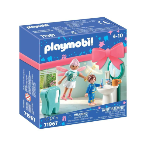Hoppá, mi ez itt? Az első kiesett fogacska!De ne aggódj, mert megérkezett a varázslatos Fogtündérke, hogy elvigye a kis fogat, és mosolyt csaljon minden kisgyerek arcára.A Playmobil Fogtündérke ajándékszett segít, hogy a gyerekek számára a fogváltás igazi