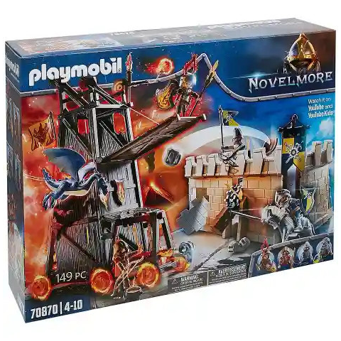 A Playmobil Novelmore lovagok és várak világa újra megelvenedik a Playmobil 70870 Novelmore - Harci támadó torony várfallal készlettel. Az évek óta tartó háború folytatódik a lázadó Burnham Raiders és Novelmore lovagjai között. A gyerekek fantasztikus