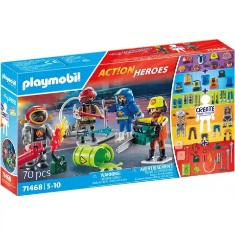 Fedezd fel a PLAYMOBIL My Figures tűzoltóság sokszínűségét – kreatív, egyedi és színes! Ez a készlet végtelen lehetőségeket kínál négy különböző speciális tűzoltó egységgel. A figurák eltávolítható sisakkal, védőruhával és még sok mással kiegészíthető