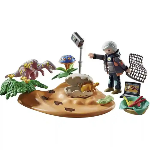 Csöppenj bele a dínók világába a Playmobil 71526 Stegosaurus fészek Velociraptor dínóval játékkészlettel! Amikor a dínókutató éppen egy tojást vizsgál, egy mohó Velociraptor alakja bukkan elő a semmiből. De a falánk dinoszaurusz nem számolt azzal, hogy a