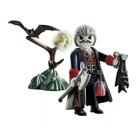 Playmobil 71582 Drakula denevérekkel: indulj izgalmas kalandokra a PLAYMOBIL Special Plus készlettel, amely tartalmaz egy köpenyes Drakulát, denevéreket és foszforeszkáló koponyát. A PLAYMOBIL hátborzongató Drakulájával garantált a borzongás. A vámpírfeje