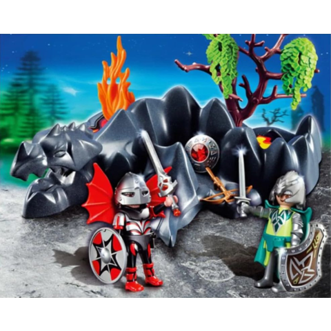 A Playmobil 4147 Lovagok harca a Sárkánysziklánál játékban a vörös és zöld Sárkánylovagok izgalmas csatája zajlik a Sárkányszikla környékén. Vajon ki lesz győztes a csatában? A játék tartalmaz a két Sárkánylovag figurát, valamint a fegyvereiket és a harci