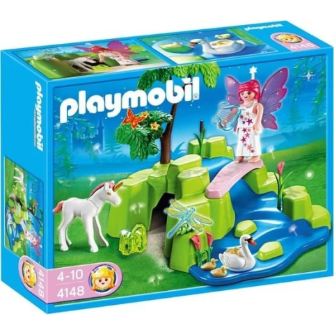 A Playmobil 4148 Tündérkert játékban a gyönyörű napsütésben nyílnak a virágok, amik odacsalogatják a pillangókat és a szitakötőket. A tündérkertben a tündér a hárfáján játszik, míg az egyszarvú csikó a vízesés melletti réten legelészik. Vajon mi rejtő