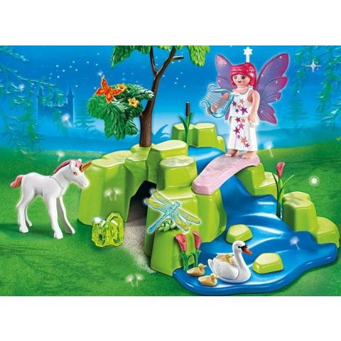 A Playmobil 4148 Tündérkert játékban a gyönyörű napsütésben nyílnak a virágok, amik odacsalogatják a pillangókat és a szitakötőket. A tündérkertben a tündér a hárfáján játszik, míg az egyszarvú csikó a vízesés melletti réten legelészik. Vajon mi rejtőzik