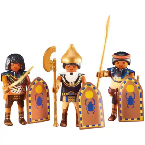 A Playmobil 6488 Egyiptomi katonák fegyvereikkel, pajzsaikkal és egyéb kiegészítőikkel minden PLAYMOBIL római és egyiptomi kollekció tökéletes kiegészítője lehet, hogy még több kalandot játszhass el az ókor világában. Ezt a terméket a GYÁRTÓ zacskós c
