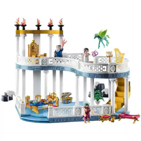 Lépj be az ókori görög mitológia varázslatos világába a Playmobil 70465 Palota az Olümposzon készlettel! Zeusz, az istenek királya arany trónjáról ad utasításokat Dionüszosznak és a Gráciák egyikének, hogy fogadják a többi istenséget a nagy ünnepségen. A