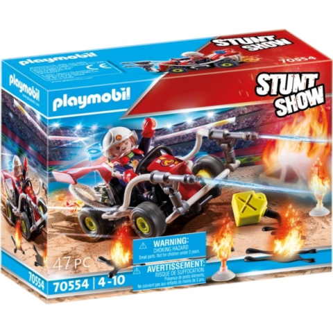 A kaszkadőr show során időnként ott is felcsapnak a lángok, ahol nem kellene. De semmi gond, mert ezzel a lánctalpas tűzoltó gokarttal azonnal a helyszínen terem a bátor tűzoltó, hogy felvegye a harcot a lángokkal. A készlet tartalmaz egy PLAYMOBIL tű