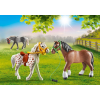 Ez a három csodálatos ló még több életet hoz a lovardába. A Knabstrupper, Trakehner és Shire fajtájú lovak izgalmas lovas kalandokat kínálnak. A játékkészlet három felszereléssel ellátott lóból áll. Kitűnő kiegészítője lehet a Playmobil lovas, pó