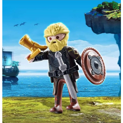 A Playmobil viking harcos készen áll a harcra! Kardjával az övében, pajzsával és kürtjével a kezeiben minden ellenséggel szembe tud szállni.