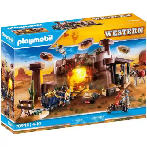 Playmobil 70948 Western aranybánya: aranyláz a vadnyugaton. Ez a jelentéktelennek tűnő szikla értékes titkot rejt: aranyat! A bányászok csákányokkal próbálják felszínre hozni az értékes aranyrögöket, amelyeket aztán a síneken csillével szállítanak ki.