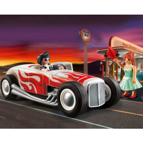 Ha kedved van utazni vagy kis városodban megmutatnád a legújabb autódat, akkor ez a szett tökéletes lesz. A szettben egy Hot Rod szemkápráztató autót találsz, amely biztosan elnyeri mindenki tetszését. Az egyszemélyes kocsi karosszériája remekül van kialakítva, festése is kimutatja azt, hogy habár régi modell, mégis a egy különleges példány. A járgányon kívül 2 figura is h