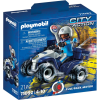 Playmobil rendőr Speed hátrahúzós quad: a rendőr felpattan szélvészgyors rendőrségi quadjára, és elindul a riasztás helyszínére. Könnyen manőverezhető quadjának köszönhetően a szűk utcák, vagy a durva terep sem jelent akadályt, és pillanatok alatt ott