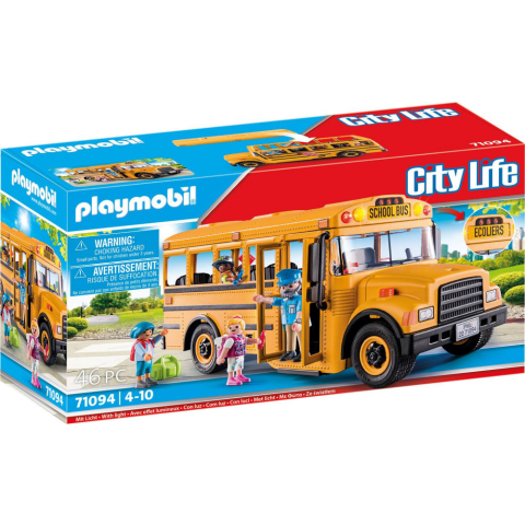 A Playmobil iskolabusz a gyerekek napi utazását oldja meg, akárcsak a valóságban. A diákok iskolatáskájukkal megpakolva türelmesen várják a buszmegállóban, hogy megérkezzen a nagy, sárga iskolabusz. Ha megérkezik, a barátságos sofőr kinyitja az ajtóka