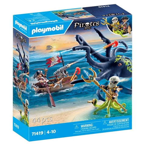 Playmobil Pirates - építőkészlet / szett, mozgó alkatrészek, anyaga műanyag, 4 darabból áll, 4 éves kortól ajánlott A Playmobil 71419 Harc az óriás polippal figurák fő előnyeiA Playmobil figurákkal gyermekeid reggeltől estig játszhatnak4 éves kortól ajánlottAnyaga műanyagA Playmobil figurák különösen az állatkedvel