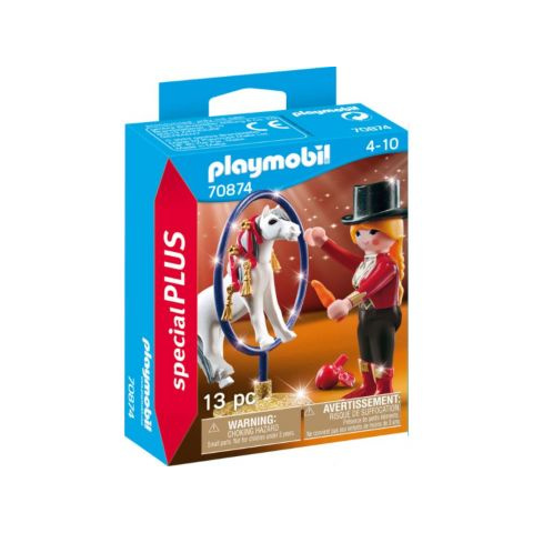 Ez a készlet első sorban azoknak fog tetszeni, akik szeretik a lovakat és rajonganak a cirkuszok világáért, hiszen a csomag egy lovas idomárt és egy rendkívül jól képzet lovat is tartalmaz. A hófehér paripa mindent mutatványt képes megcsinálni, különösen