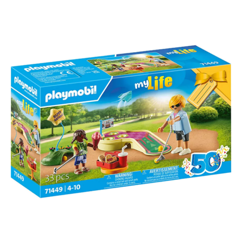 A Playmobil Minigolf szett egy kis méretű, ám izgalmas minigolf pályát mutat be, három lyukkal és két szenvedélyes golfrajongóval. Ez a készlet lehetővé teszi a játékosok számára, hogy virtuálisan játszhassanak ezen a kis golfpályán, mintha egy valódi minigolf élmény részesei lennének. A játék során a két karakter próbálja meg ügyességét és ütéseit, miközben az egyes pályák