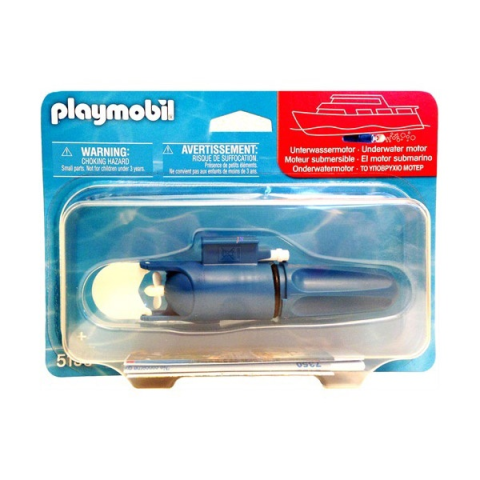 Elemmel működő, Playmobil vízi járművekre könnyen felerősíthető víz alatti motor. A motor segítségével a kisebb motorcsónakok, de az egész nagy kalózhajók is életre kelnek, vidáman úszkálnak a kádban, vagy medencében is.