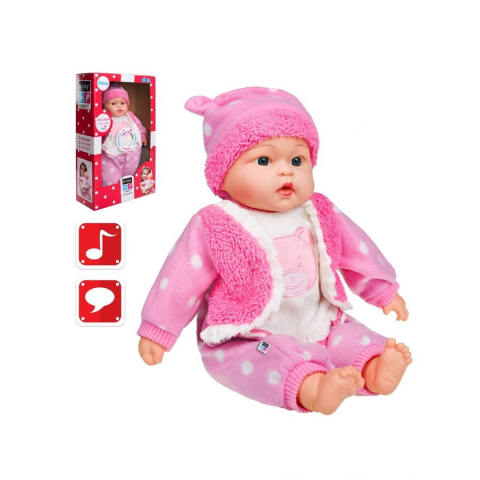 Aranyos beszélő játékbaba PlayTo. Nagyszerű játék minden kislány számára. A baba feje és végtagjai gumiból készültek, de puha törzsének köszönhetően még alváskor is ölelgethető. A baba kedves arccal rendelkezik, mint egy igazi kisbaba. Csodaszép rózsaszín