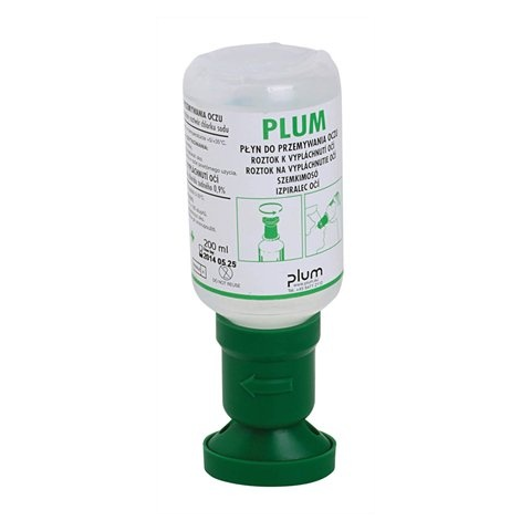A Szemöblítő folyadék, 200 ml, PLUM (ME21) steril, 0,9%-os nátrium-klorid oldat (szemfolyadékkal azonos összetételű fiziológiás sóoldat) porok és más idegen anyagok szembe jutásakor megvédi a szaruhártyát, szemlencsét a porvédős szemmosófej csészéjén talá