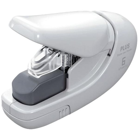 Irodai tűzőgép - mini, nyitott és lapos tűzés, tűzési kapacitás akár 5 lap, ergonomikus kialakítás, anyaga fém és műanyag, fehér kivitel, mérete 10,6 × 11 × 3,6 cm (Ma×Sz×Mé), tömege 144 g Az időtálló Plus mini fűzőgép nemcsak irodai, hanem otthoni használatra is alkalmas. Akár 5 lap összefűzésére is alkalmas. A lapos tűzés biztosítja, hogy a tárolt dokumentumok kevesebb helyet foglalja