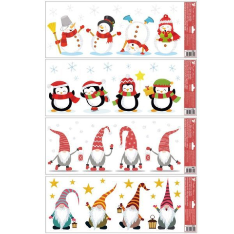 Vidám hangulatú, manókkal, pingvinekkel és hóemberekkel díszített ablakmatrica. Tökéletes ünnepi hangulatot áraszt az otthonokban. A különböző formájú és méretű motívumok öntapadósak, így egyszerűen felhelyezhetőek és eltávolíthatóak az ablakról vagy üveg felületről.A matricacsomagok többfélék, a feltüntetett ár 1 db-ra vonatkozik, amelyet véletlenszerű változatban szállítunk.Mérete: 60 x 22 cm