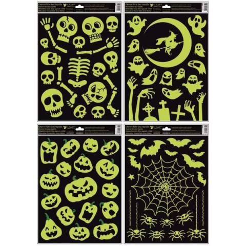 Ahogy beköszönt az ősz, úgy közeledik a halloween, ami egyre népszerűbb hazánkban is. Ez a sötétben világító, hátborzongató mintákat ábrázoló ablakdísz szett tökéletes választás a rémesen jó dekorációhoz. Az ablakmatrica felhelyezése egyszerű: csak meg kell tisztítani a kiválasztott felületet, úgy, hogy ne legyen poros és nedves, majd le kell húzni a mintát a papírról és odailleszteni a dekorálni kívánt felületre. A matricák az évszak elmúlását k