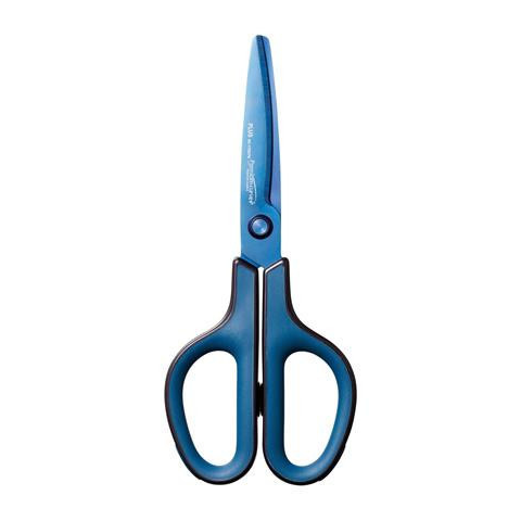 Olló, általános, 17,5 cm, PLUS Fitcut Curve Premium, diplomatakék Éles vágás az elejétől a végéig!!! Éles pengeszögek a különböző anyagok pontos és könnyed vágásához, például: papír, karton, műanyag, ragasztószalag, csomagolás, pet palackok, zsinórok,