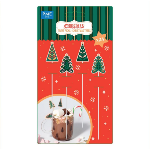 Karácsonyfa mintás előétel találó pálcika, amely stílusos dekorációt ad az ünnepi előételeknek. 24 darabos csomag. Tedd ünnepivé minden falatot ezekkel a PME karácsonyi tálaló pálcikákkal! A papír díszítők előre kivágva és készen állnak a használatra.