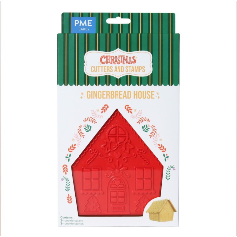 Három darabos műanyag kiszúró szett nyomdával, amely megkönnyíti a mézeskalácsház egyes elemeinek precíz formázását