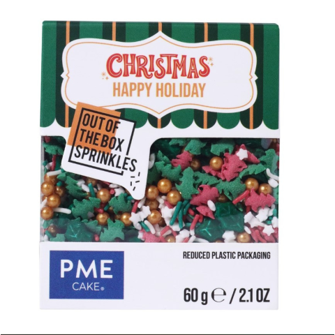 Boldog Karácsonyi Ünnepek feliratú szórógyöngy, amely ünnepi hangulatot teremt tortákon és süteményeken. 60 g-os kiszerelés. Szórj egy édes meglepetést ünnepi finomságaidra ezzel a PME szórás mixszel! Önthetsz belőle keveset vagy sokat, szórd annyit, a