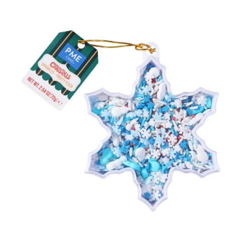 Hópehely formájú karácsonyi szórógyöngy, elegáns díszítőelem süteményekhez és tortákhoz. 72 g-os díszdobozban. Édes meglepetés díszítéséhez használj PME díszítő keveréket ünnepi finomságaidon! Önts belőle keveset vagy sokat, és szórd meg kedved szerint