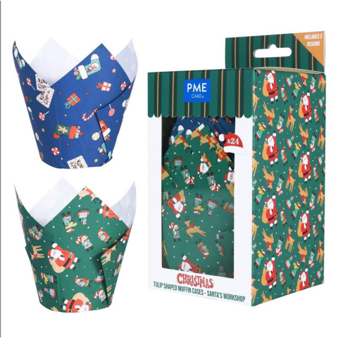 Télapó napjára készült tulipános muffin papírok, amelyek tökéletesek ünnepi muffinokhoz. 24 darabos kiszerelésben. Adj egy kis karácsonyi varázst a süteményeidhez ezekkel az ünnepi PME muffin papírokkal! A tulipán formájú, hegyes csúcsú papírok stílust