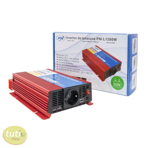 Autós inverter, 12V-ról képes előállítani 220V-ot, USB kimenet, mobiltelefon töltéshez, tartozékokkal 220V-os, és USB kimenet A PNI H1200W12 frekvenciaváltó 220V AC tápegységgel rendelkezik az elektromos készülékek tápellátásához, de egy USB töltőcsatl