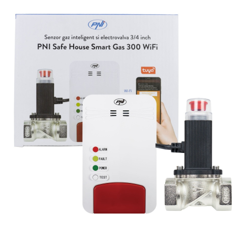 Gázérzékelő készlet és mágnesszelep 3/4-es csatlakozással, Wifi-vel, és TuyaSmart vezérlő alkalmazással. 3/4 hüvelykes gázérzékelő és mágnesszelep A PNI Safe House Smart Gas 300 WiFi csomag gázérzékelője pontosan érzékeli a földgázokat , például a metá