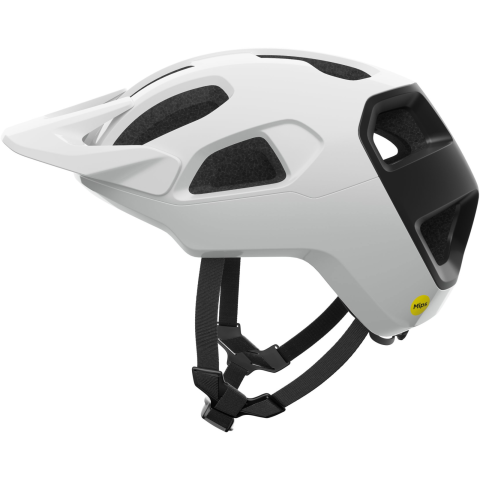 Kerékpáros sisak -, MTB sisak, mérete S 51 - 54 cm fejkerülethez, MIPS technológia, rözítés csatos öv segítségével, CE / EN 1078, CPSC 12,03, AS/NZS 2063 minősítés, konstrukció anyaga polikarbonát és EPS, napellenző, szellőzőnyílások és forgókerék a méret beállításához a felszerelés része, levehető párnázás, párnázás anyaga nejlon, fehér és fekete kivitel Akár terepen kerékpároztok, akár könnyed kirándulásra viszed a gyerekeket, nem hiányozhat r