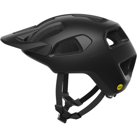 Kerékpáros sisak -, MTB sisak, mérete L 59 - 62 cm fejkerülethez, MIPS technológia, rözítés csatos öv segítségével, CE / EN 1078, CPSC 12,03, AS/NZS 2063 minősítés, konstrukció anyaga polikarbonát és EPS, napellenző, szellőzőnyílások és forgókerék a méret beállításához a felszerelés része, levehető párnázás, párnázás anyaga nejlon, fekete kivitel A POC Cularis kerékpáros bukósisak egy könnyű sisak, amelyet gyors és szórakoztató trail kerékpározá