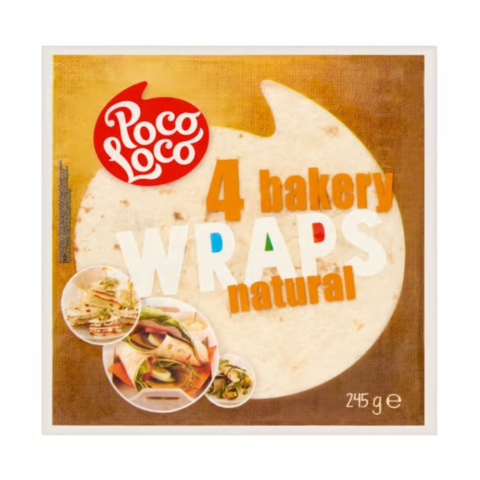 Poco Loco lágy tortilla búzalisztből 245 g Elkészítés és felhasználás: Nedvesítse meg a tortillát egy kis vízzel. Melegítse meg a tortillát a microsütőben 1 percig 750 Watton. Helyezze a tölteléket a wrap közepére. 4 & 5. Hajtogassa össze a tortil