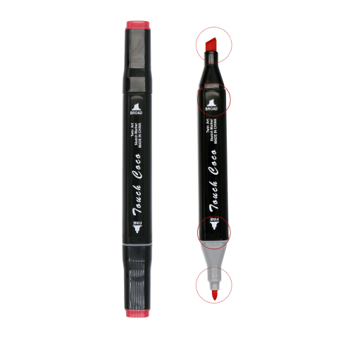 A markerek két vége különböző vastagságú hegyekkel vannak ellátva (1-4 mm-es vágott heggyel és 0,4 mm-es finom heggyel)