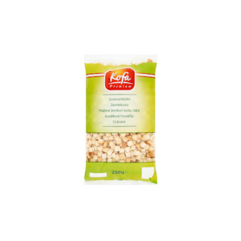 Kofa Zsemlekocka Natúr 250 g Ismerkedj meg a klasszikus, natúr ízű zsemlekockával. A Kofa Zsemlekocka Natúr 250 g egy sokoldalú konyhai alapanyag, amely levesekhez, salátákhoz és panírozáshoz is kiváló lehetőséget kínál. Termékismertető A natúr zse