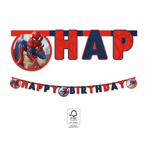 Spiderman, Pókember Happy Birthday felirat FSC Mérete: 2 m Anyaga: papír FSC (Forest Stewardship Council)