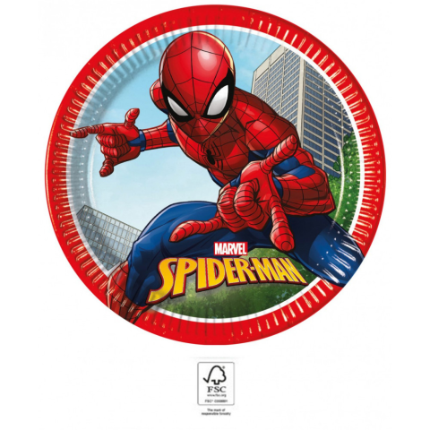Spiderman Crime Fighter, Pókember papírtányér 8 db-os 23 cm FSC 8 db tányér/csomag Anyaga: papír FSC (Forest Stewardship Council)